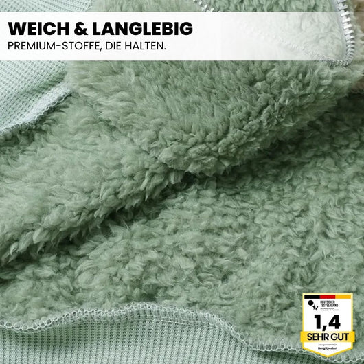Die CozyFeel besteht aus einem atmungsaktiven Stoff, der dafür sorgt, dass überschüssige Wärme und Feuchtigkeit nach außen abgeleitet werden. Dies verhindert Überhitzung und sorgt für ein angenehmes Tragegefühl – ideal für lange Spaziergänge oder tägliche Erledigungen.