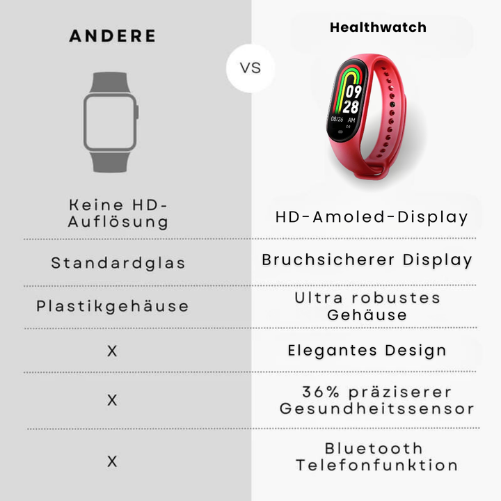 Die Healthwatch wurde speziell für allgemeine Fitnessbedürfnisse entwickelt und zeichnet sich durch ihre Fähigkeit aus, außergewöhnliche Gesundheitsdaten zu liefern.
