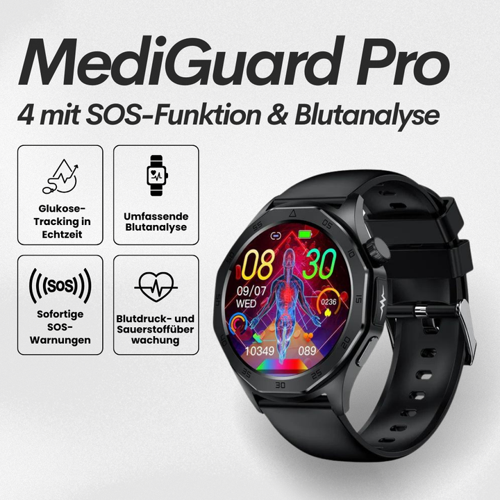 Diese Blutzucker-Gesundheitsuhr könnte dein Leben retten! Entdecke die SOS-Funktion der MediGuard Care Pro 4!