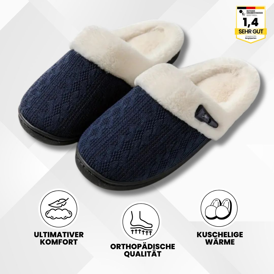 Das ergonomische Design und die gepolsterten Einlegesohlen sorgen dafür, dass sich jeder Schritt wie auf Wolken anfühlt - im Gegensatz zu herkömmlichen Hausschuhe, die das Fußgewölbe nicht den ganzen Tag über stützen. Dies ist besonders in den kälteren Monaten wichtig, wenn Komfort und Wärme an erster Stelle stehen.