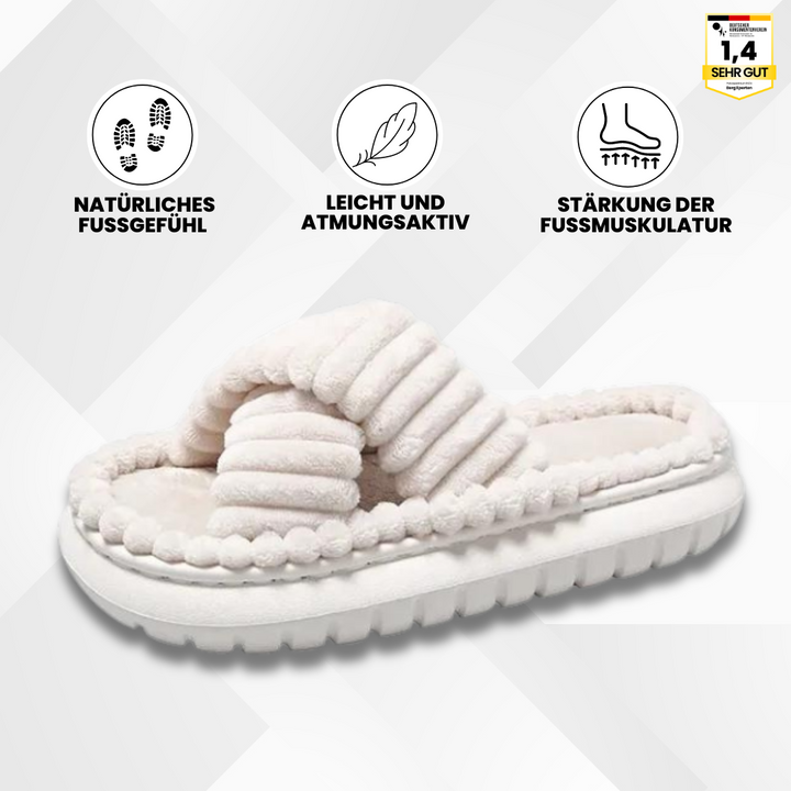 Diese Hausschuhe sind mit einer fortschrittlichen Dämpfungstechnologie ausgestattet, die müden und schmerzenden Füßen außergewöhnlichen Halt und Komfort bietet.