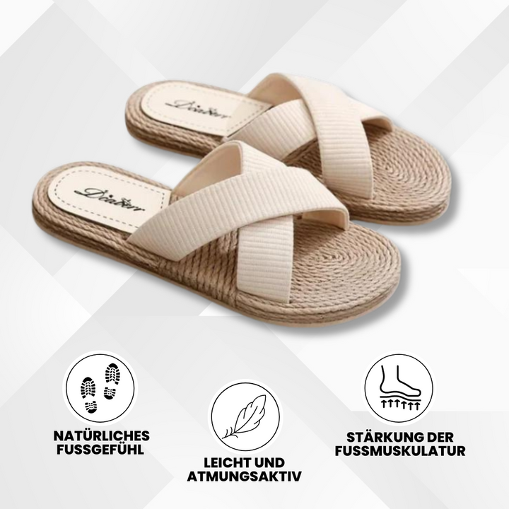 OrthoViva - ergonomische schmerzlindernde Sandalen entlastet Rücken und Gelenke und gibt Ihnen das Gefühl, wie auf Wolken zu gehen, während es gleichzeitig ein Ausrutschen im Alltag verhindert.
