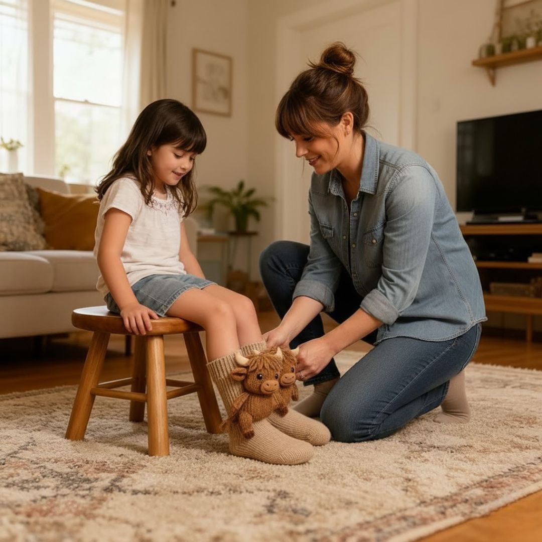 Sag kalten, kratzigen Socken Lebewohl. Unser hochwertiges, handgestricktes Material hält deine Füße warm, ohne sie zu überhitzen. Das längere Design umhüllt deine Waden sanft – perfekt zum Einkuscheln zu Hause.